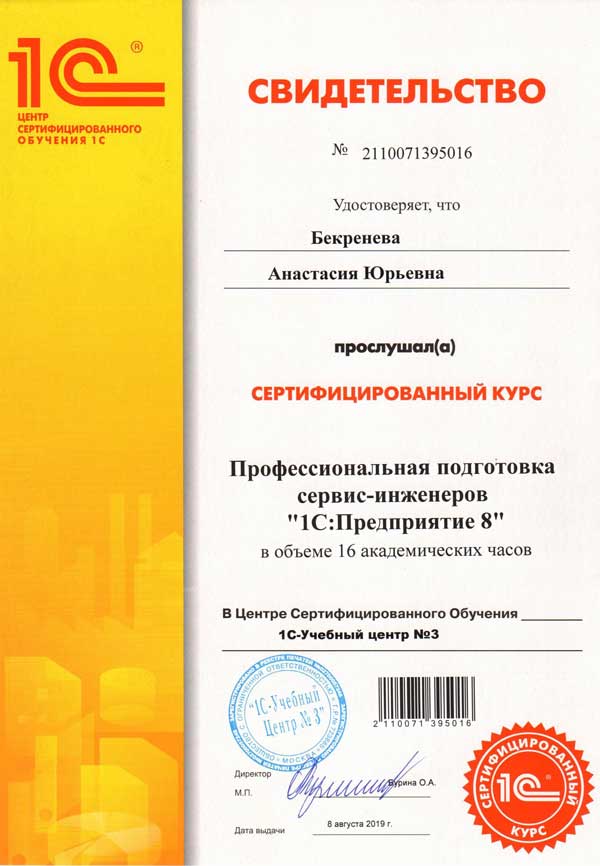 Выдаем официальный сертификат 1С